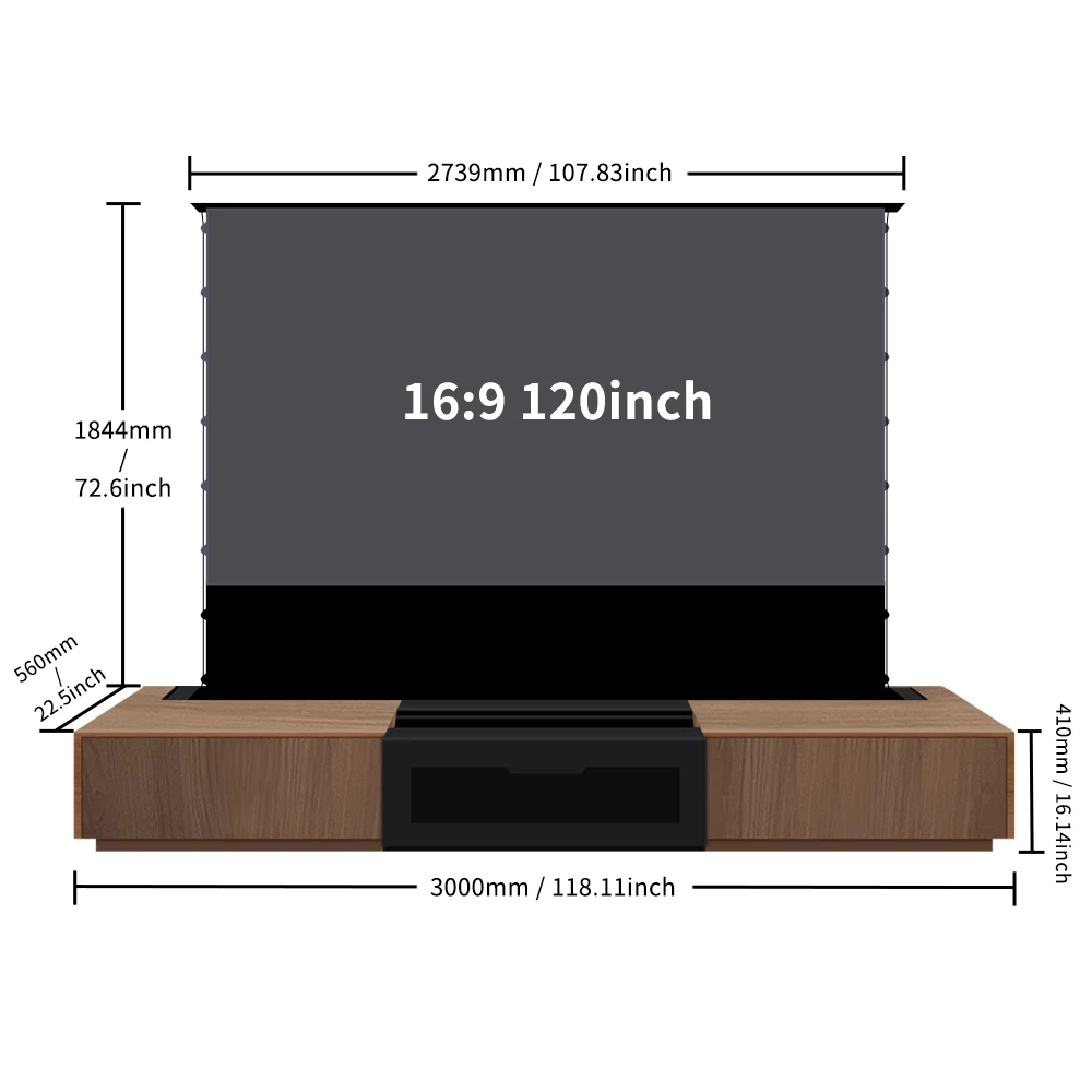 Perfectly crafted for Ultra Short Throw (UST) Projectors, this premium cabinet supports screen sizes from 84″ to 133″, offering a motorized lift platform that adjusts seamlessly for the perfect projection angle. Whether you’re binge-watching, gaming, or hosting movie night, this cabinet turns your space into a stunning cinematic experience.